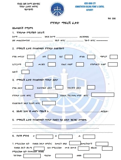 - ማንኛውምየግንባታ ፈቃድ ለማግኘት የሚፈልግ ሰው ቅፅ- 001 ማመልከቻ በወረዳ አስተዳደሩ ለሚመለከተ ፅ/ቤት በድህረ ገፅ ወይም በአካል ቀርቦ የአገልግሎት ጥያቄ ማቅረብ አለበት።