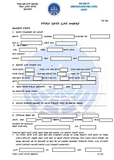 - ማንኛውምየግንባታ ፈቃድ ለማግኘት የሚፈልግ ሰው ቅፅ- 001 ማመልከቻ በወረዳ አስተዳደሩ ለሚመለከተ ፅ/ቤት በድህረ ገፅ ወይም በአካል ቀርቦ የአገልግሎት ጥያቄ ማቅረብ አለበት።